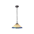 Elegant Dual Light Pendant with 40cm Blue Tiffany Crystal Shade in Antique Brass