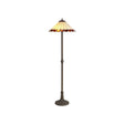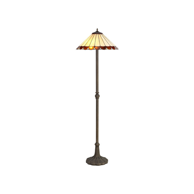 Elegant Antique Brass Floor Lamp with Handcrafted Amber Tiffany Shade and Crystal Accents