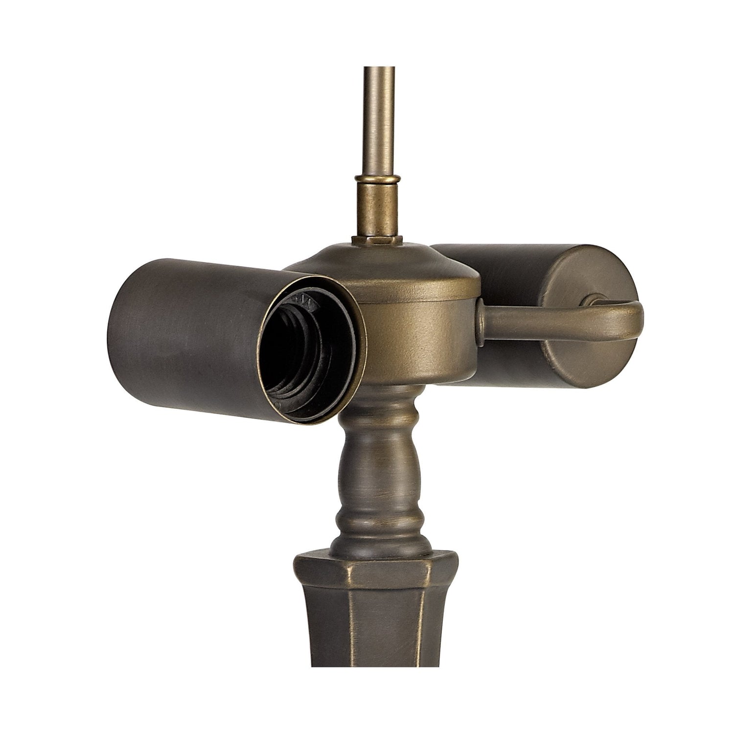 Octagonal Tiffany Table Lamp with Dual Light, Amber & Cream Shade, Antique Brass Finish