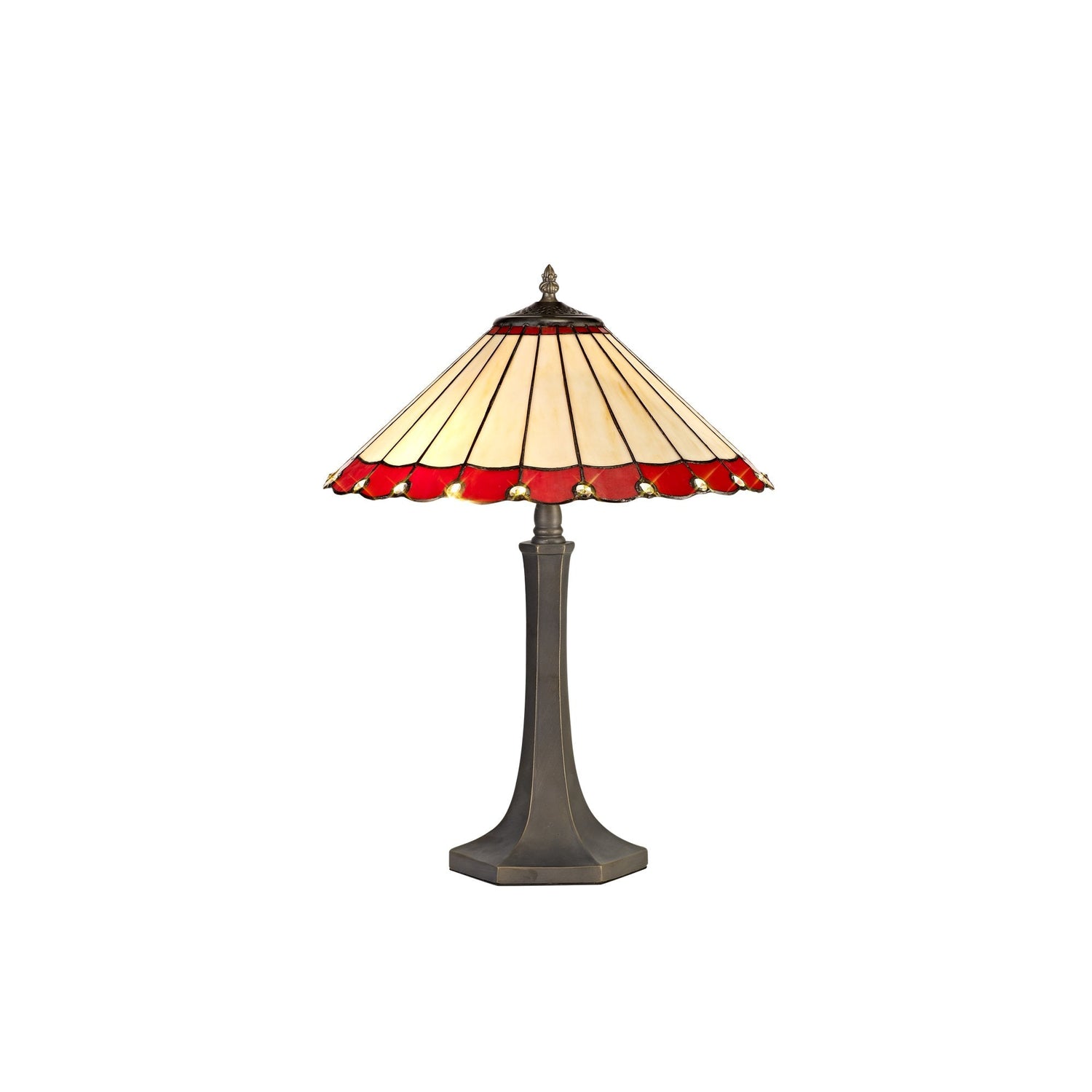 Vintage Octagonal Tiffany Table Lamp with Red/Cream Crystal Shade and Antique Brass Finish