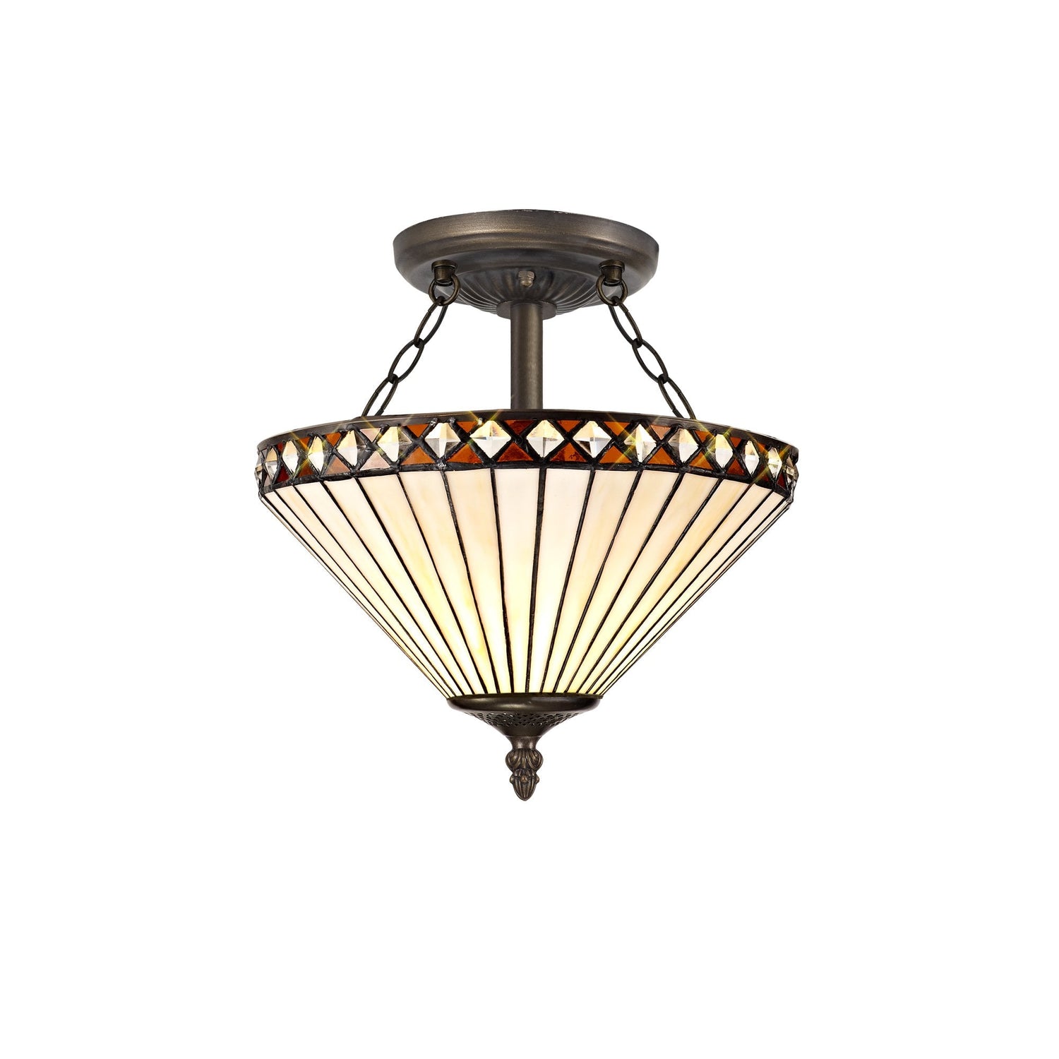 Elegant Amber & Cream Tiffany-Style 2-Light Ceiling Fixture with Antique Brass Finish