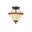 Elegant Dual-Light Semi-Flush Ceiling Fixture with 30cm Tiffany Amber/Cream Shade and Antique Brass Finish
