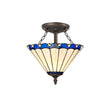 Elegant Blue and Cream Tiffany-Style Semi-Flush Ceiling Light with Crystal Accents