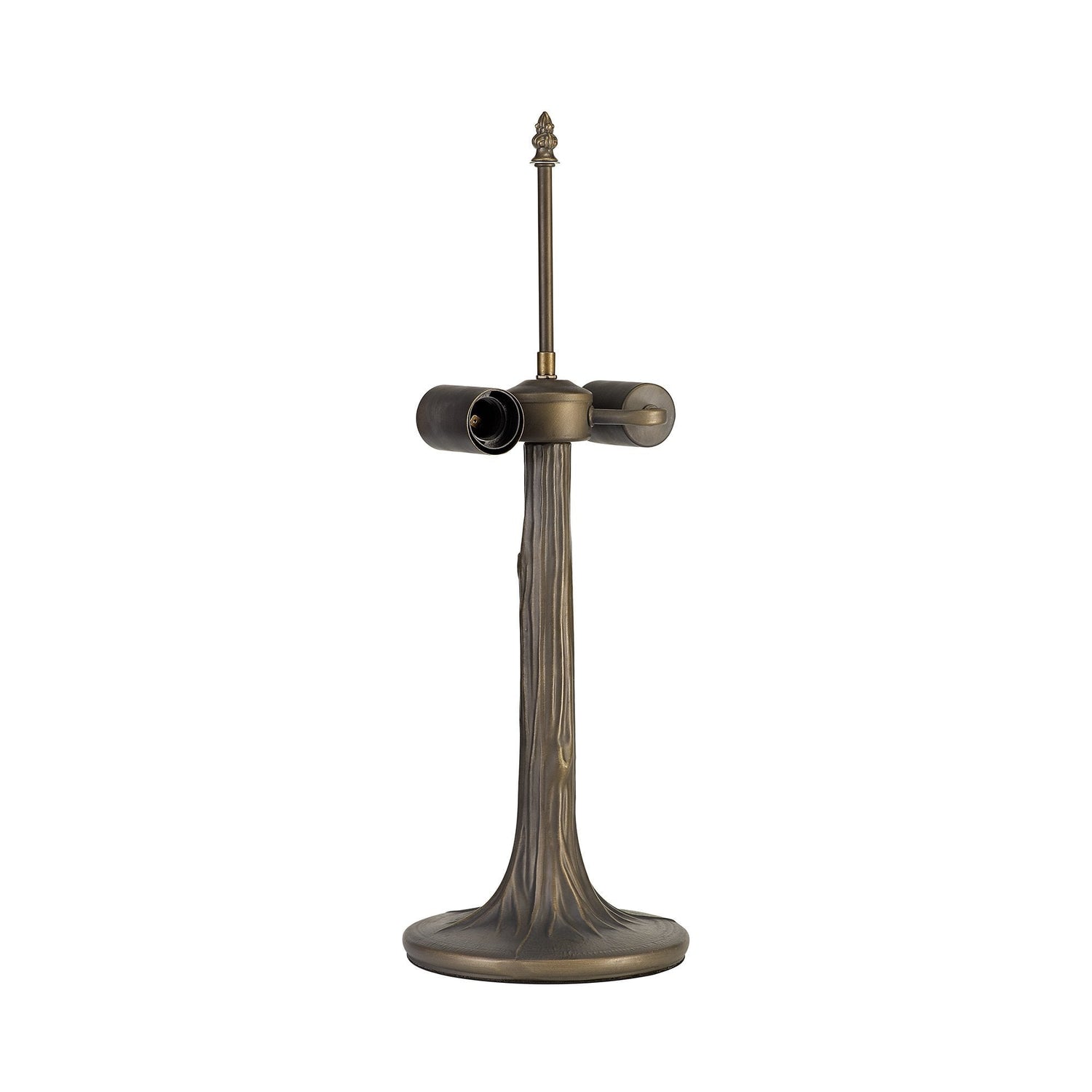 Elegant Dual-Bulb Tree Table Lamp with Tiffany Blue/Cream Shade & Aged Brass Finish