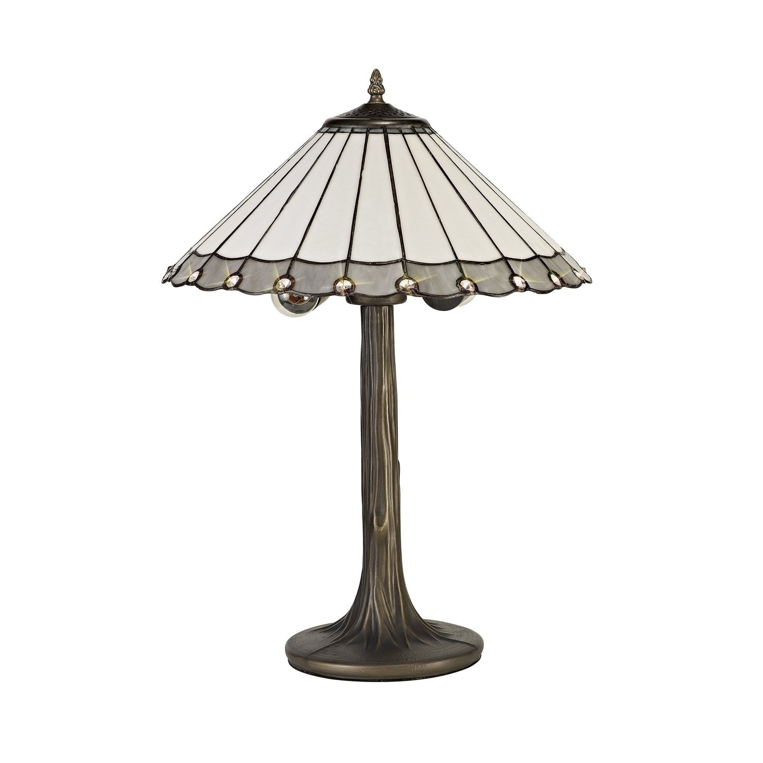 Elegant Dual-Arm Tiffany Table Lamp with Crystal Accents in Grey/Cream and Antique Brass Finish