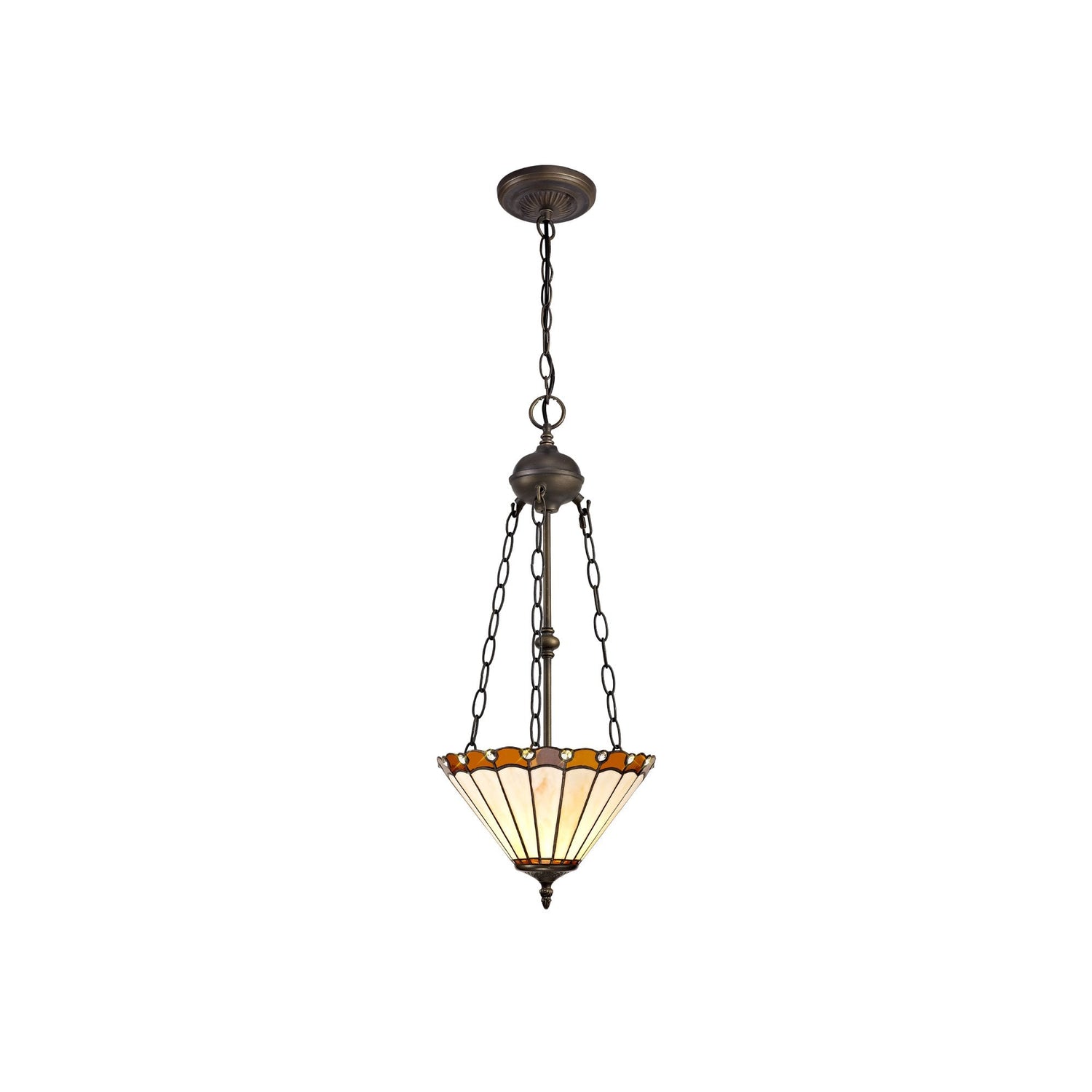 Amber Glow: Art Deco Tiffany Pendant with Antique Brass Finish