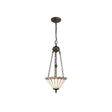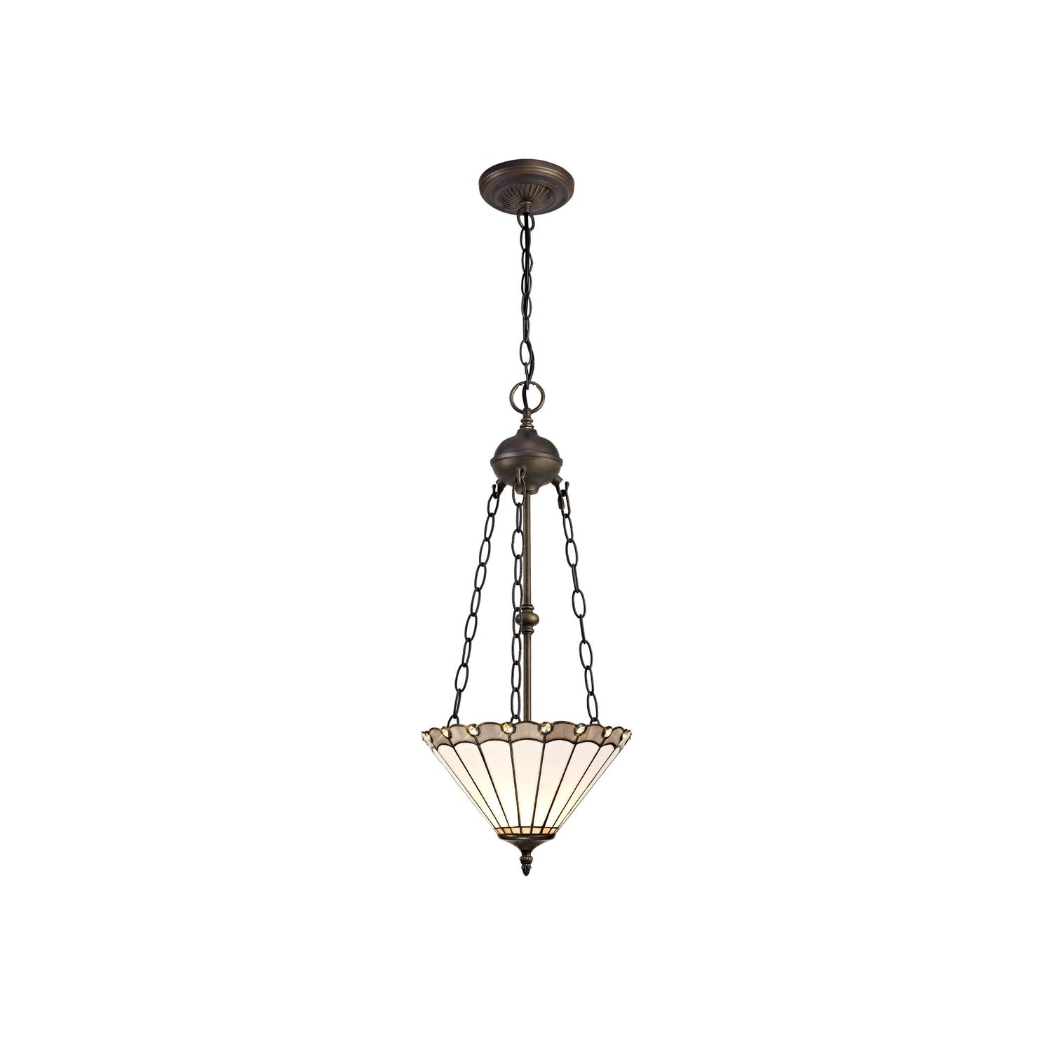 Elegant Dual-Light Pendant with Tiffany-Style Shade in Grey/Cream & Antique Brass