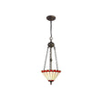 Elegant Antique Brass Tiffany Pendant Light with Dual Uplighters and Red/Cream Stained Glass Shade
