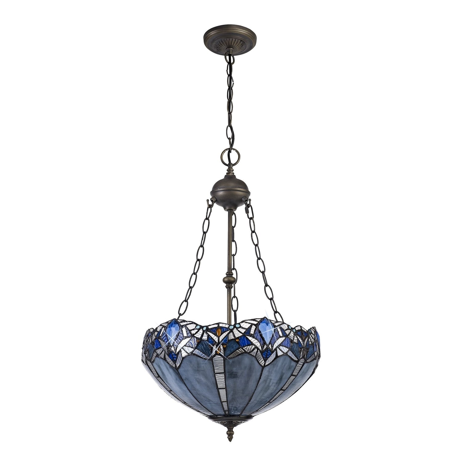 Antique Brass Dual Light Pendant with Tiffany Blue Crystal Shade