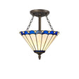 Tiffany-Inspired 3-Light Semi-Flush Ceiling Fixture in Blue/Cream with Aged Antique Brass Accents