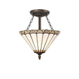 Elegant Triple-Light Semi-Flush Ceiling Fixture with 30cm Tiffany Shade in Aged Antique Brass and Crystal Accents