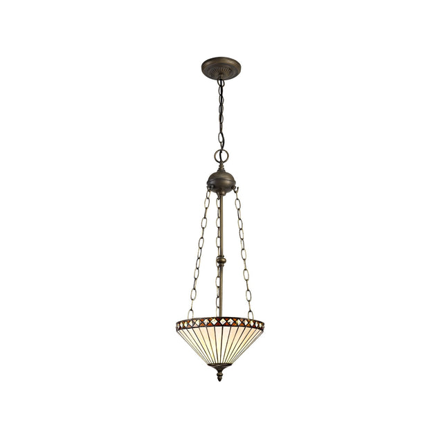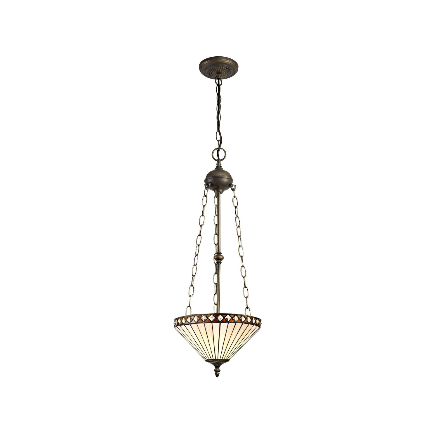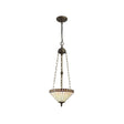 Elegant Amber and Cream Tiffany Uplighter Pendant with Aged Antique Brass Finish