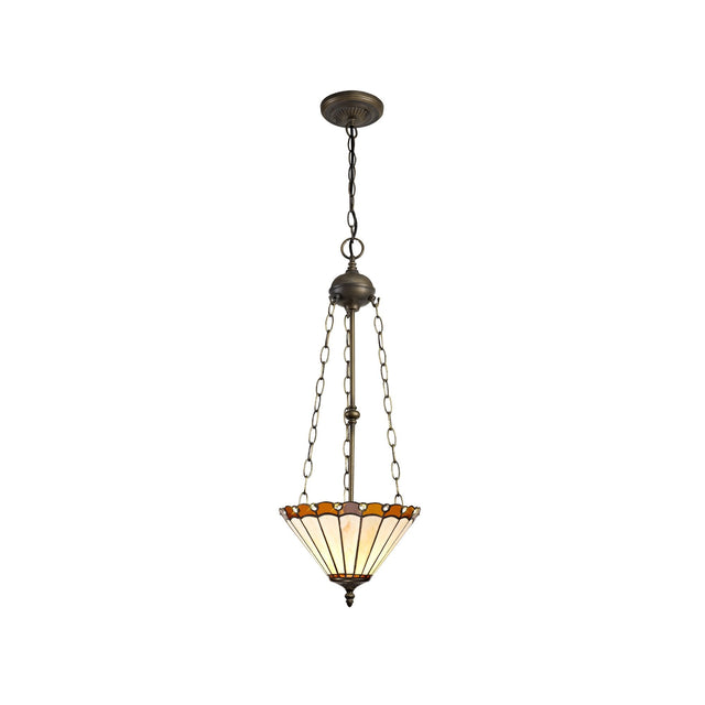 Elegant 3-Light Tiffany Pendant with Amber and Cream Accents in Antique Brass Finish