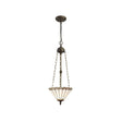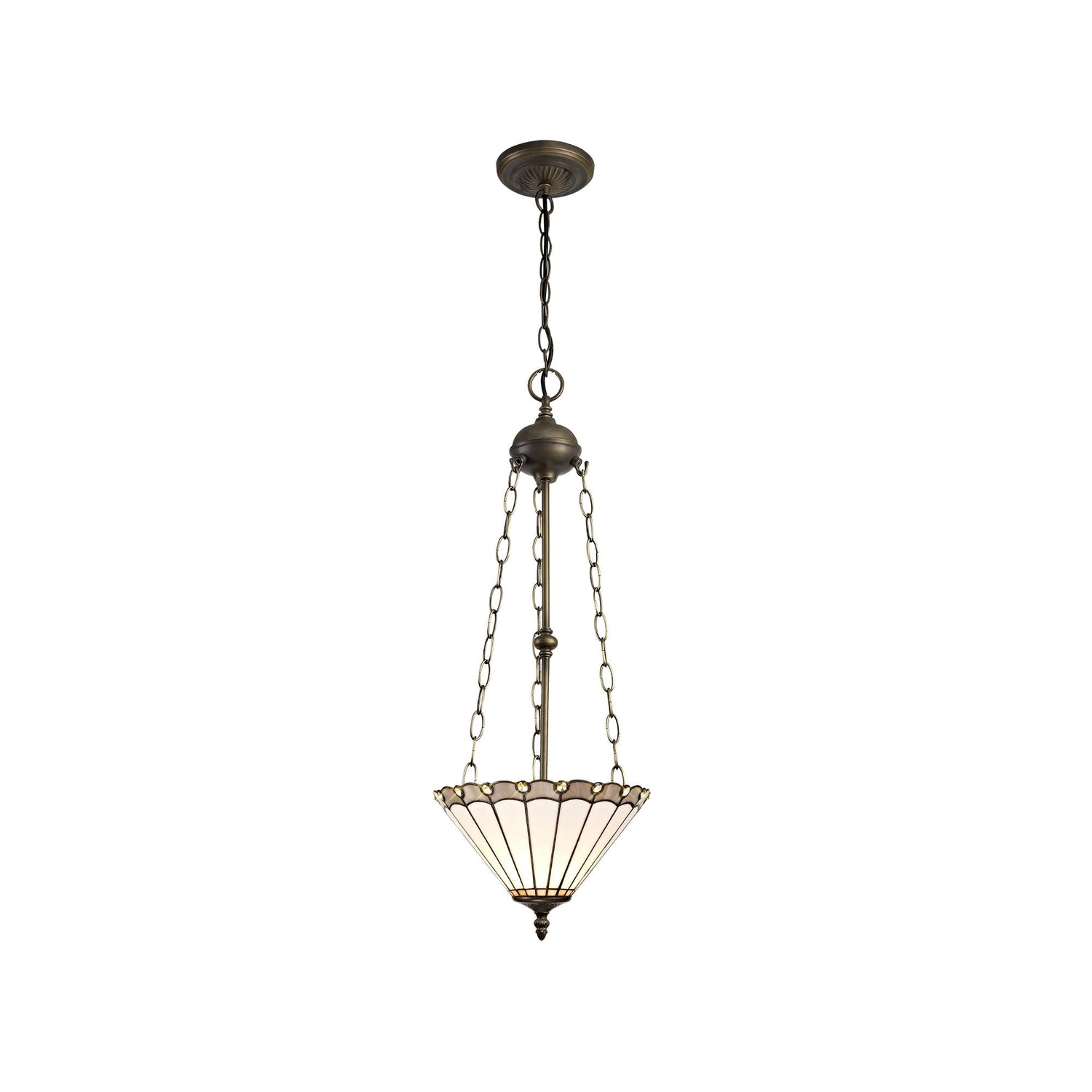 Elegant 3-Light Uplighter Pendant with Tiffany-Style Shade in Antique Brass and Crystal Details