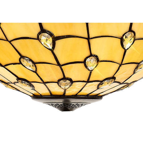£33833 GBPUnit price /UnavailableIn stock (1000 units)Antique Brass Semi-Flush Ceiling Light with 40cm Tiffany Shade and Clear K9 Crystals