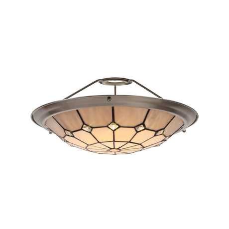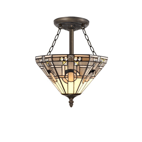 £23753 GBPUnit price /UnavailableIn stock (1000 units)Tiffany Style Semi Flush Ceiling Light with Crystal Accents, Antique Brass Finish