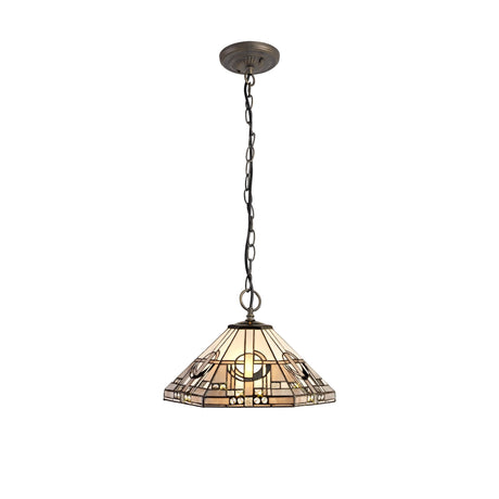 £30368 GBPUnit price /UnavailableIn stock (1000 units)Elegant 2-Light Pendant with 40cm Tiffany Shade in Grey/White and Antique Brass