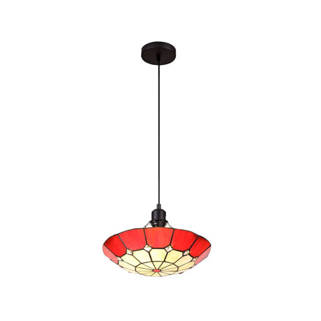 £12067 GBPUnit price /UnavailableIn stock (1000 units)Elegant Red and Cream Tiffany Pendant Light with Antique Brass Accents and Crystal Detail