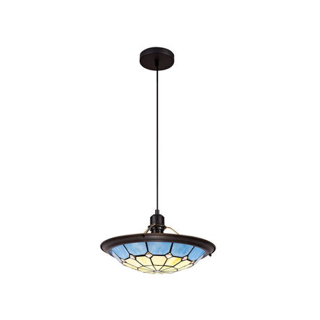 £12067 GBPUnit price /UnavailableIn stock (1000 units)Tiffany Style Pendant Light with Rich Blue and Cream Shade, Antique Brass Trim, and Crystal Accent