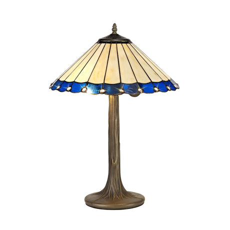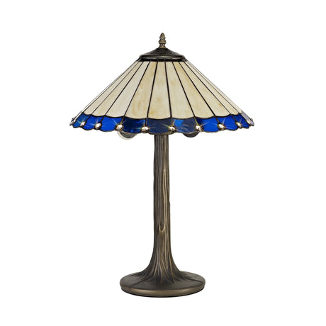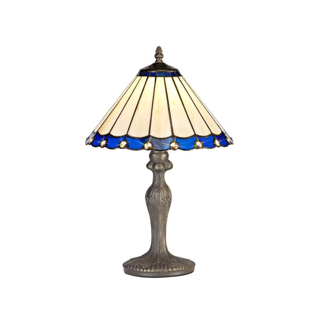 £20414 GBPUnit price /UnavailableIn stock (1000 units)Elegant Tiffany Style Table Lamp with Blue and Cream Shade, Aged Antique Brass Finish