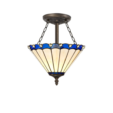 £17453 GBPUnit price /UnavailableIn stock (1000 units)Tiffany-Inspired 3-Light Semi-Flush Ceiling Fixture in Blue/Cream with Aged Antique Brass Accents