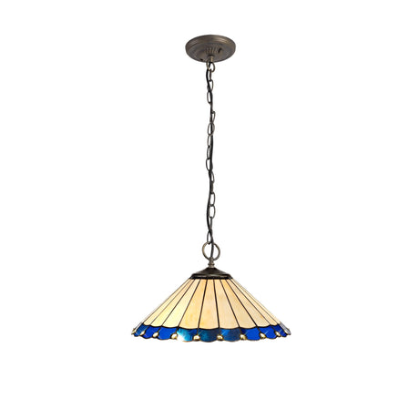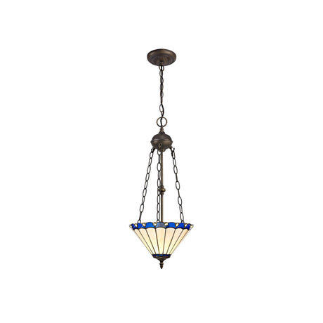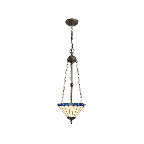 £18713 GBPUnit price /UnavailableIn stock (1000 units)Tiffany-Style 3-Light Pendant with Blue & Cream Stained Glass and Antique Brass Finish