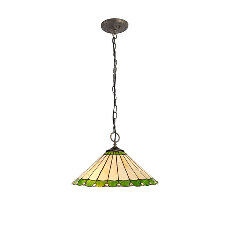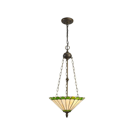 £25832 GBPUnit price /UnavailableIn stock (1000 units)Elegant Tiffany-Style Pendant Light with Green and Cream Crystal Shade, Antique Brass Finish
