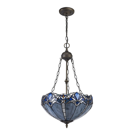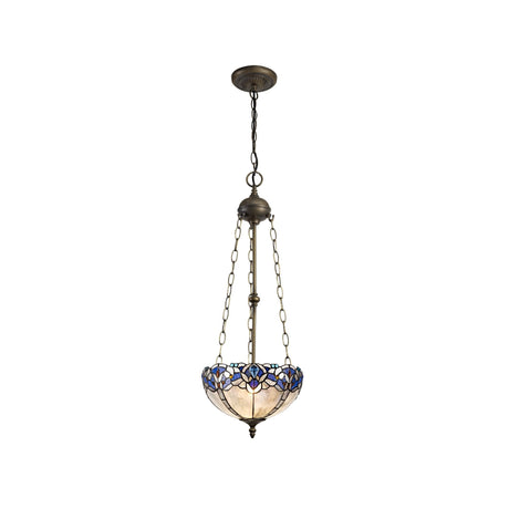 £31817 GBPUnit price /UnavailableIn stock (1000 units)Vintage Tiffany Style 3-Light Uplighter Pendant with Blue & Clear K9 Crystal and Aged Antique Brass
