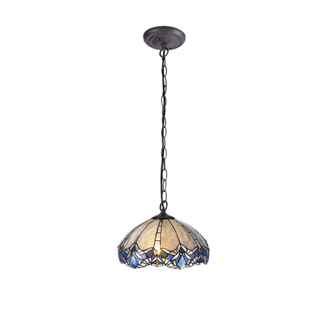 Elegant 1-Light Pendant with 30cm Blue Tiffany Shade and Crystal Accents