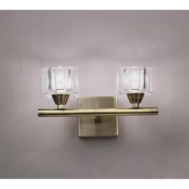 Cuadrax Dual Light Wall Fixture in Antique Brass with Rocker Switch
