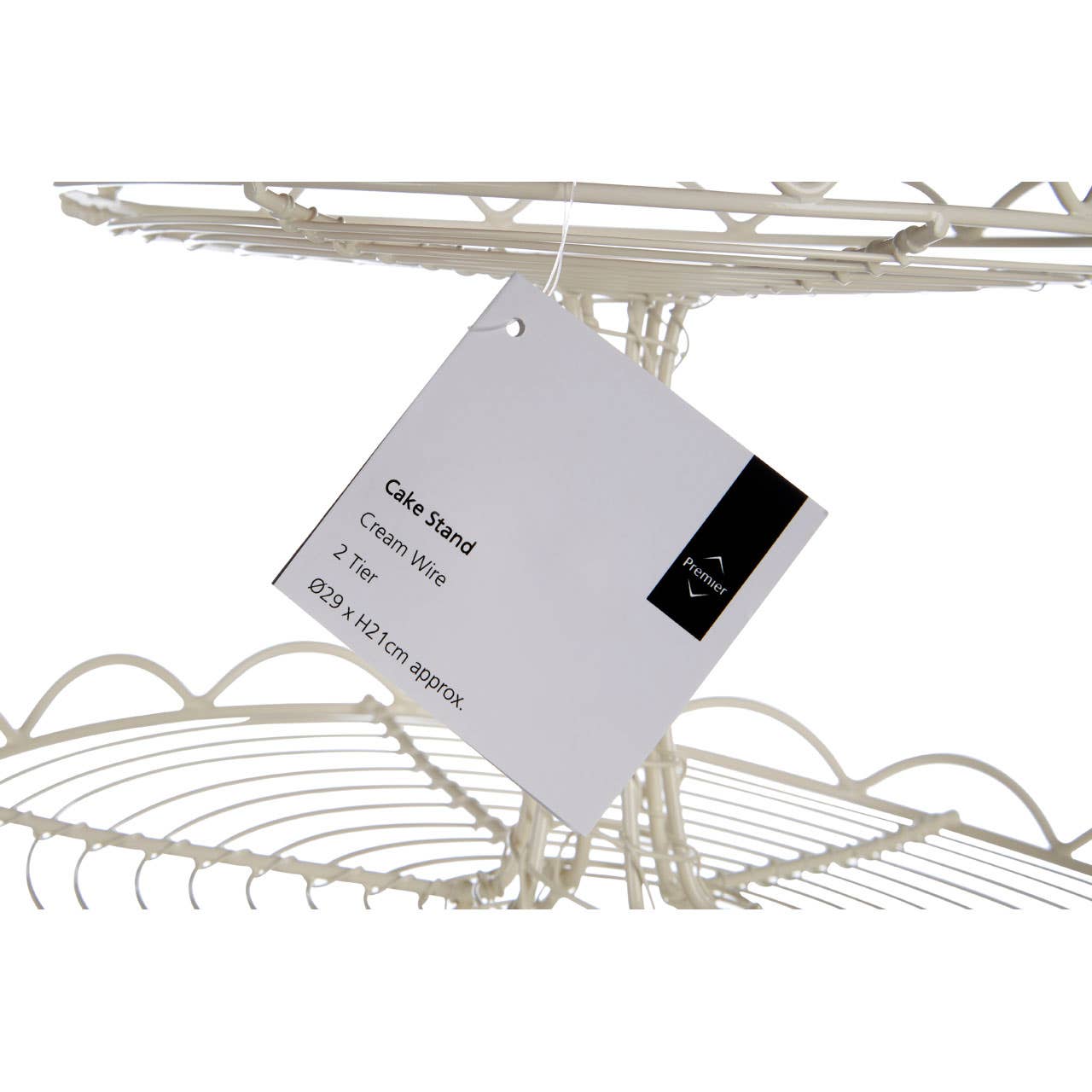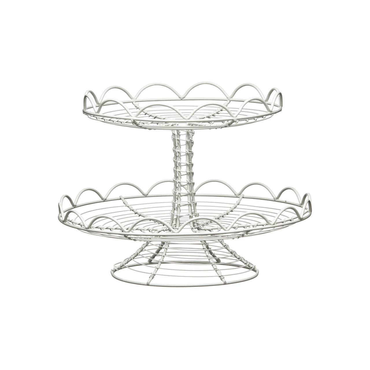 "If you're wanting to have family or friends round for a special occasion and are serving delicious treats then this cream wire two tier cake stand is ideal for displaying and serving your delicious homemade cakes. A great space saver on the table with the edges slightly raised to keep your treats from falling off, the attractive stand will make a great centrepiece on you table or countertop. Easy to clean, the elegant cake stand is the ideal accessory for parties of all occasions."