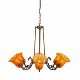 This Antique Chandelier with a flower bud Glass Shade to add a amber vibe to the rooms decor, Comes in a number of finishes so dont be afraid to have a look at the rest of our Mullan pendants and chandelier.