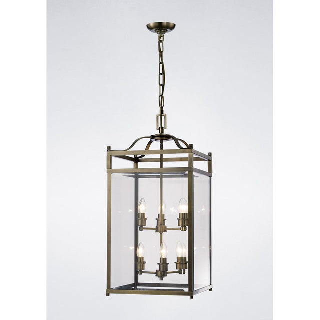 Aston 6-Light Antique Brass and Glass Pendant Chandelier