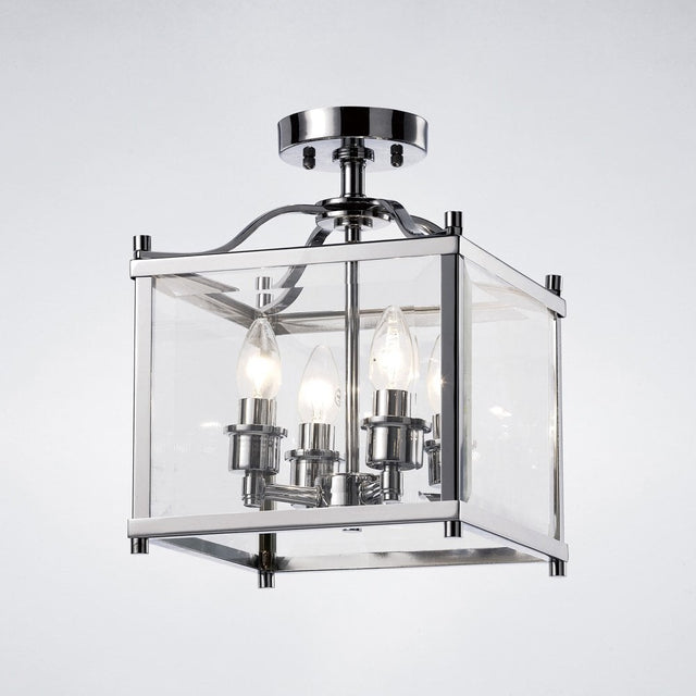 Aston Collection: 4-Light Semi-Flush Ceiling Fixture in Polished Chrome with Glass Accents