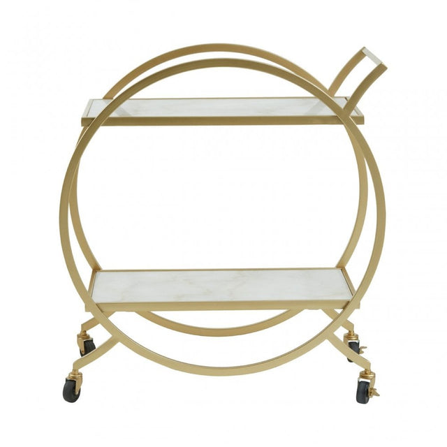Avantis Luxe Gold and Marble Two-Tier Bar Cart