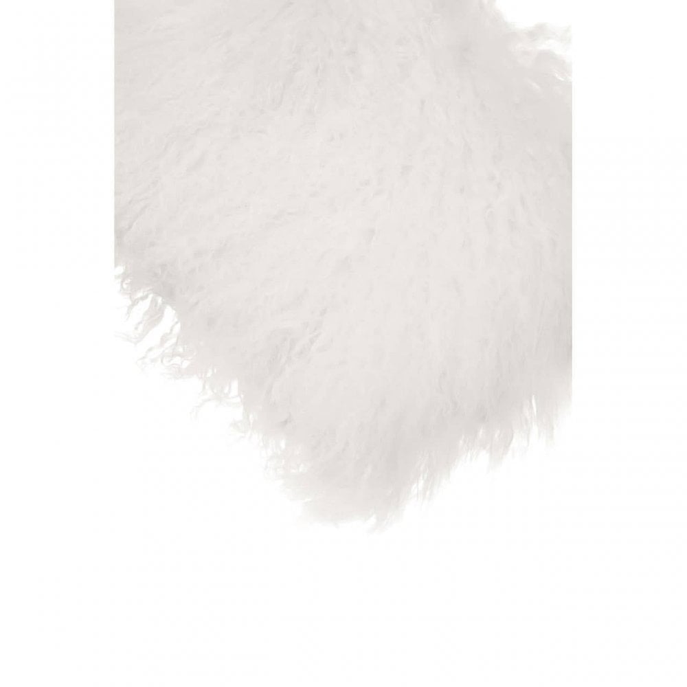 This decorative white cushion boasts a fluffy front finished with polyester reverse and it is skilfully handcrafted from original Mongolian lamb fur. Offering comfort with style, this cushion creates a luxurious seating experience.