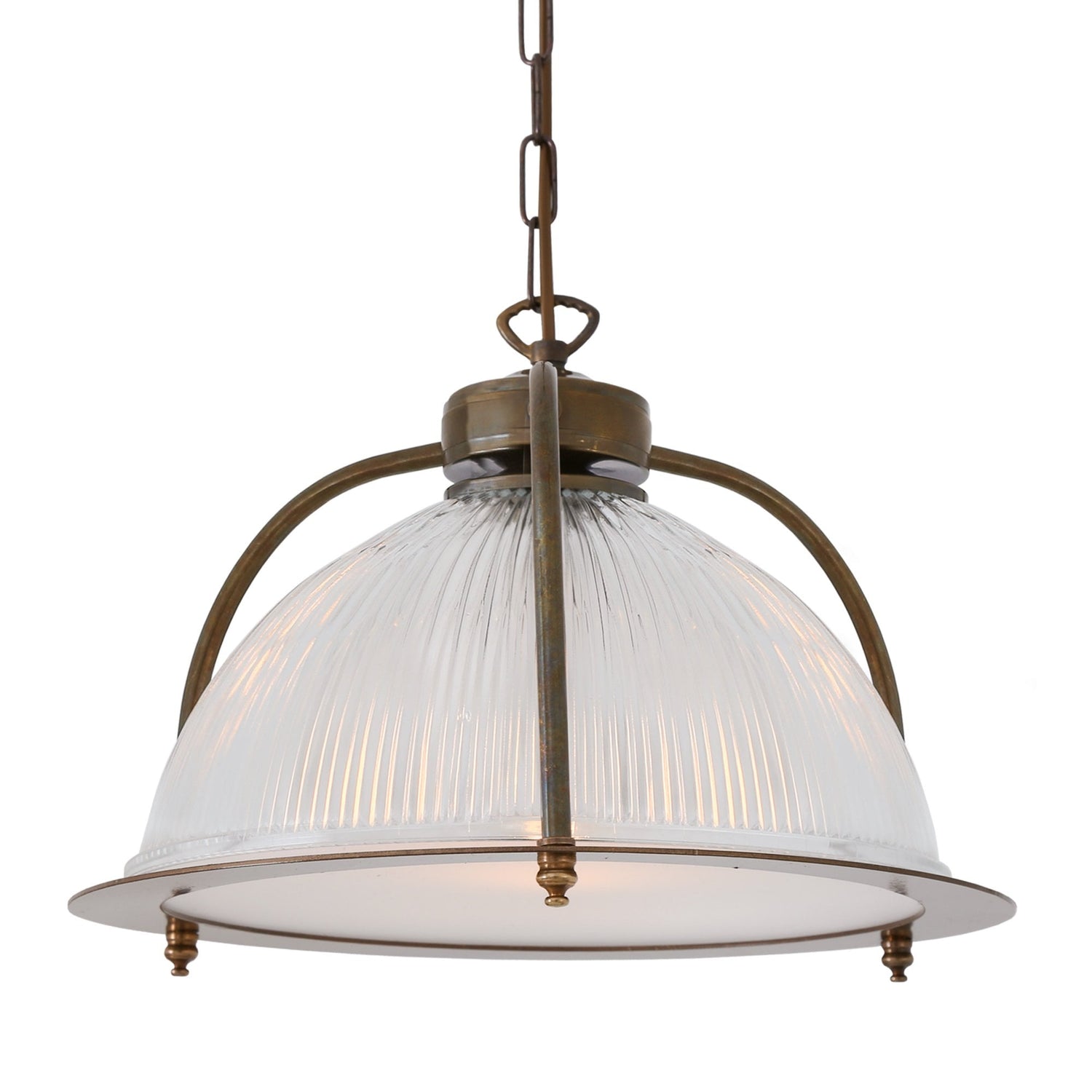 Antique Brass Bousta Holophane Pendant Light with Diffuser