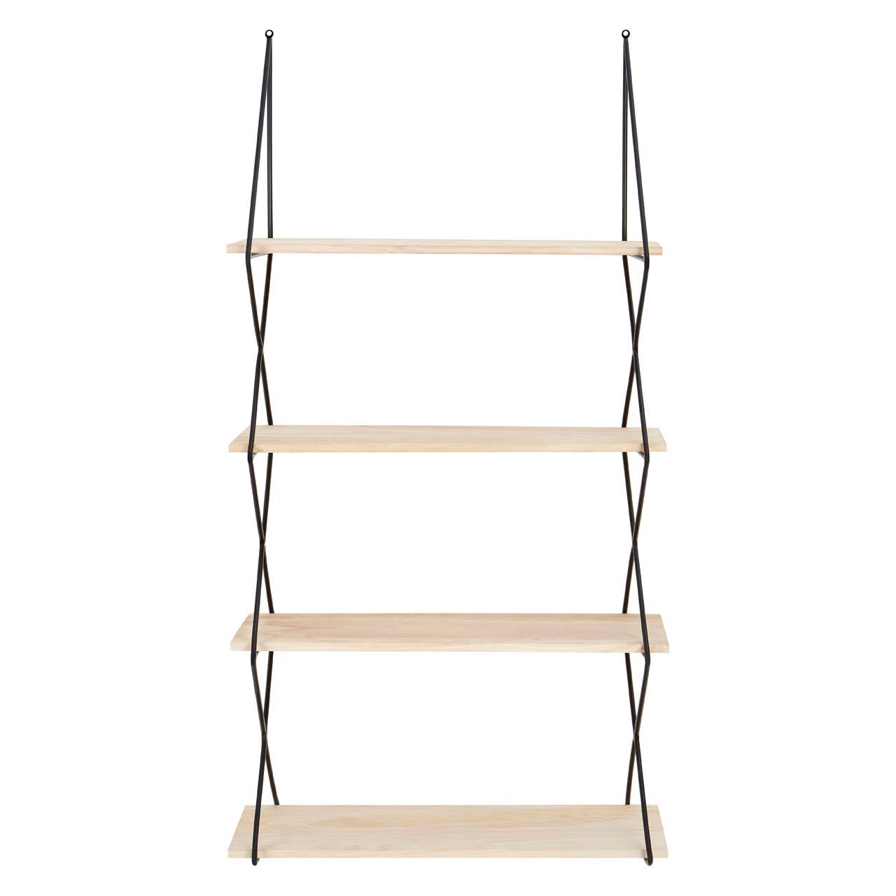 Rustic Brixton Quad-Tier Wooden Shelf with Black Metal Frame
