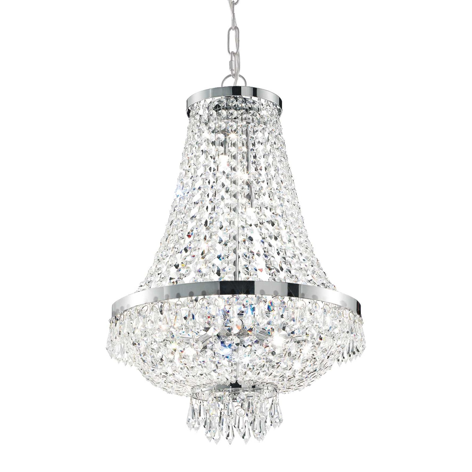 Metal frame with gold or chrome finish. Octagonal decorative elements with icicle shaped crystal beads.