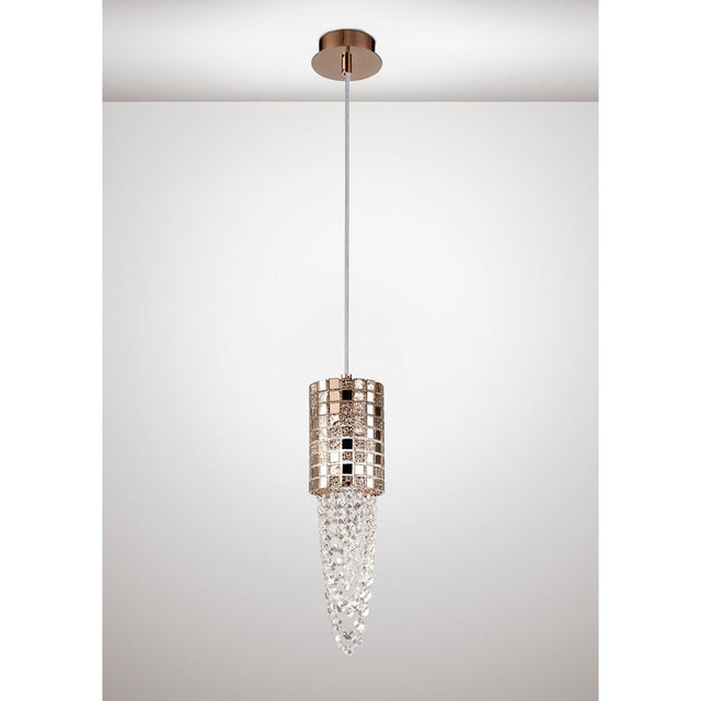 Camden Rose Gold Pendant Light with Mosaic Glass & Crystal Decor