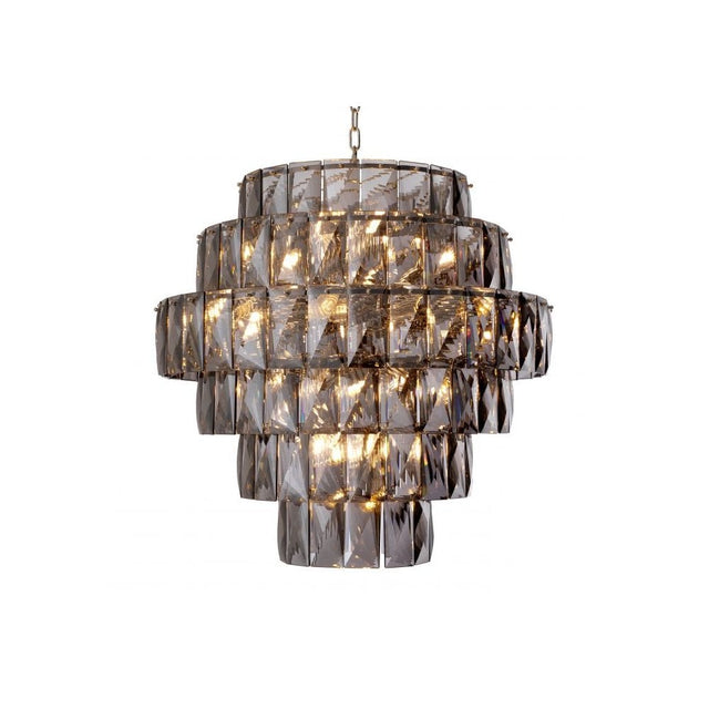 Elegant Amazone L Chandelier, Nickel Finish with Smoke Glass