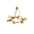 Piazetta Mid-Century Modern Chandelier, Antique Brass & White Globe Shades