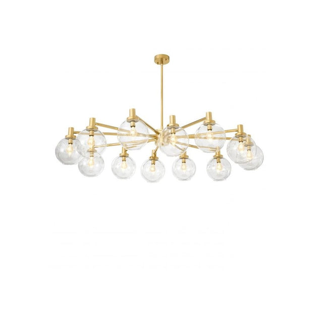Lit or unlit, the Selva Chandelier radiates elegance and lightness into your lounge or dining room. Its clean-line base with gold finish gives this lustrous crown a modern look, providing a subtle contrast to the twelve mouth-blown glass lamp shades, that were created by skilled artisans.