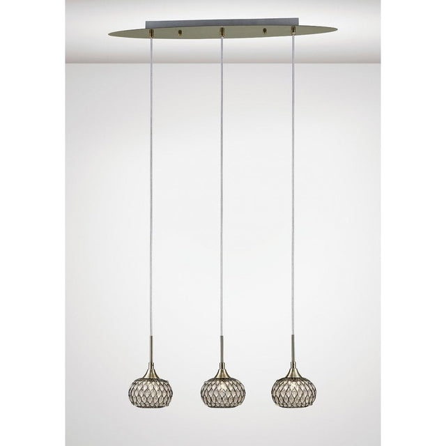 Chelsie Triple Pendant Light in Antique Brass and Clear Glass