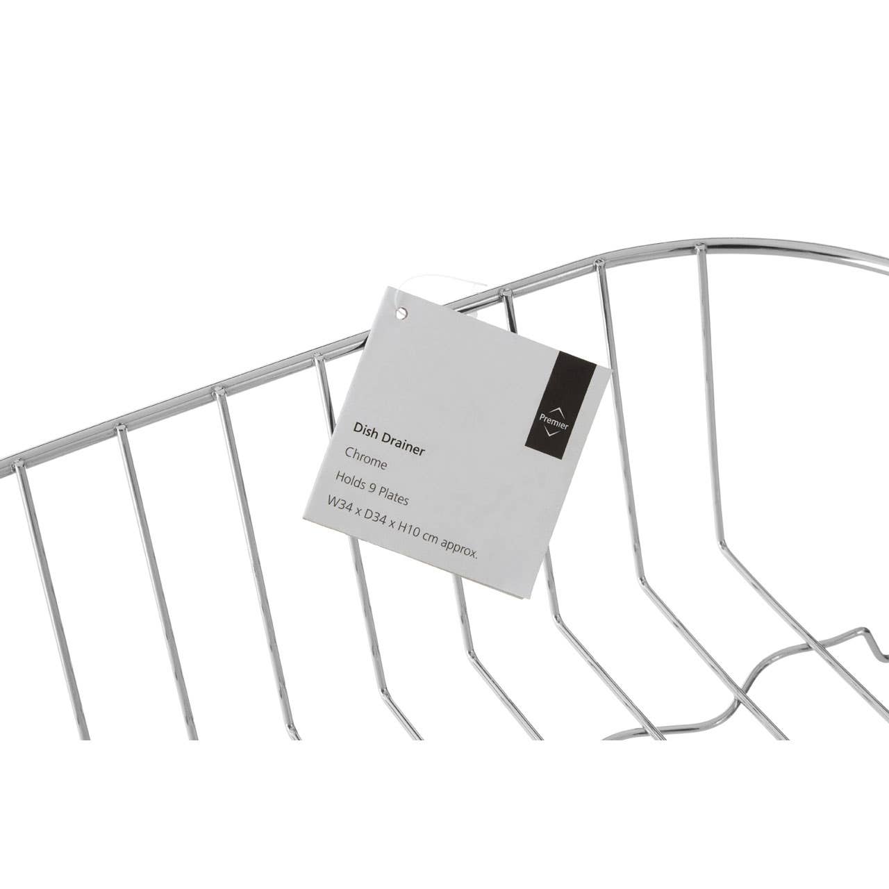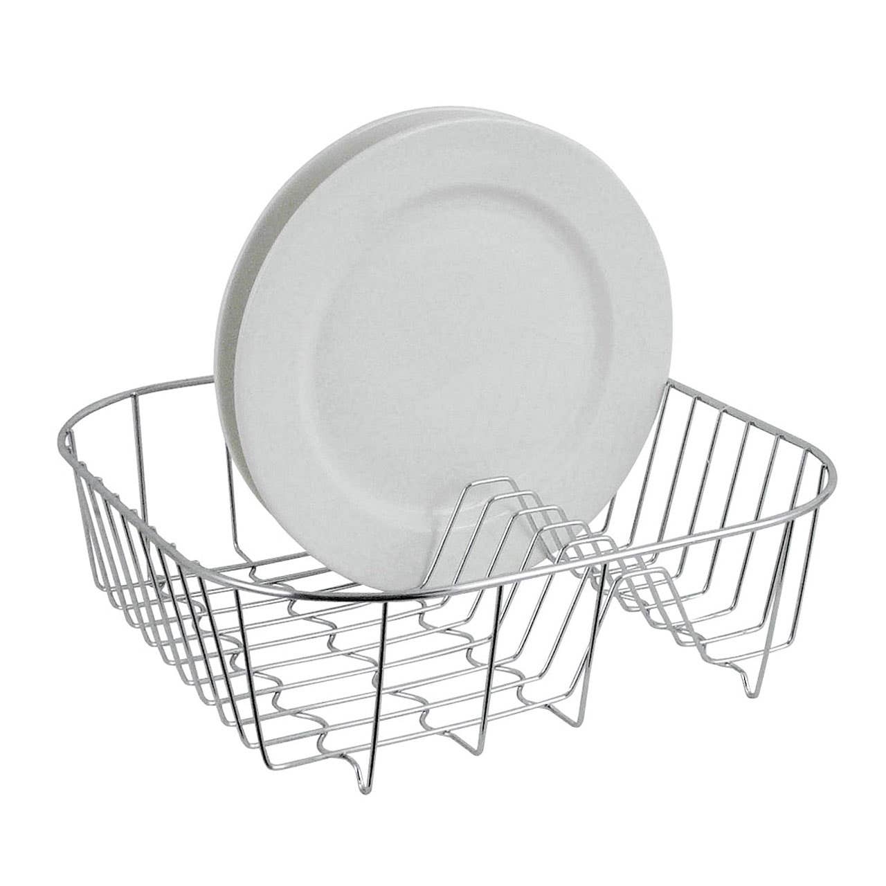 This dish drainer has a light and durable build with raised metal bars at one end. Its stylish appearance aids in maintaining the decor of the kitchen.