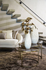 Duarte Round Glass Nesting Coffee Tables – Brown Glass & Gold Finish (Set of 2, Ø65x39cm + Ø75x44cm)
