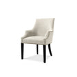 Legacy Dining Chair: Clarck Sand Upholstery with Antique Brass Accents and Black Legs