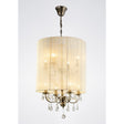 Ella Luxe Pendant with Ivory Silk Shade and Antique Brass Crystal Display