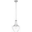 The design of the generously sized Everly collection is based on decorative blown glass containers. Chrome finished pendants feature clear glass and the Olde Bronze finish features seeded glass. These fittings are made more memorable when used with a vintage style LED filament lamp. Contemporary or traditional, these pendants can be used singularly or in multiples to elevate every room.