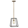 Fulton’s minimalist beauty emphasizes ‘less is more’ with vintage industrial style. This clean, airy tapered cage design is constructed without glass and has a two tone bronze and brass finish.